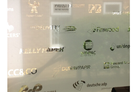 Polymere, transluzente Premium PVC-Druckfolie mit Dust-Effekt (Glasdekorfolie) und Luftkanälen im Kleber (permanent) für langfristigen Innen- und Außeneinsatz.