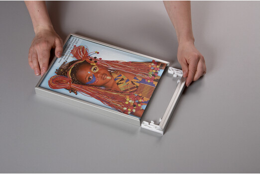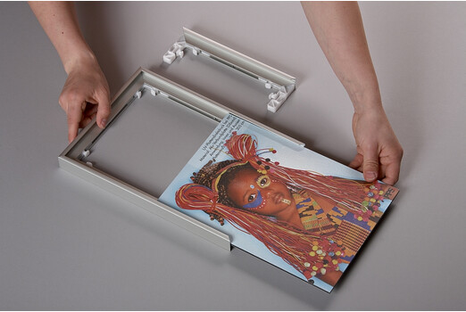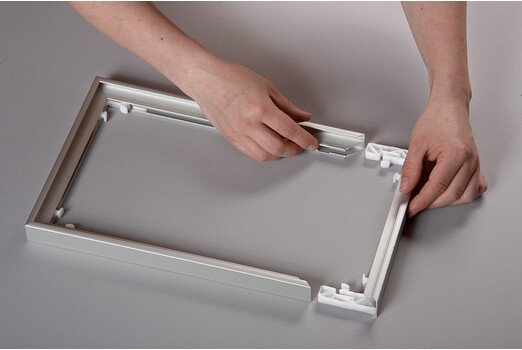 - Elegantes Wechselrahmensystem aus Aluminium in verschiedenen Farben (lackiert und eloxiert)