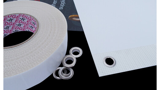 Einseitig selbstklebende Randverstärkung für PVC-Banner und Meshmaterialien, 40 mm